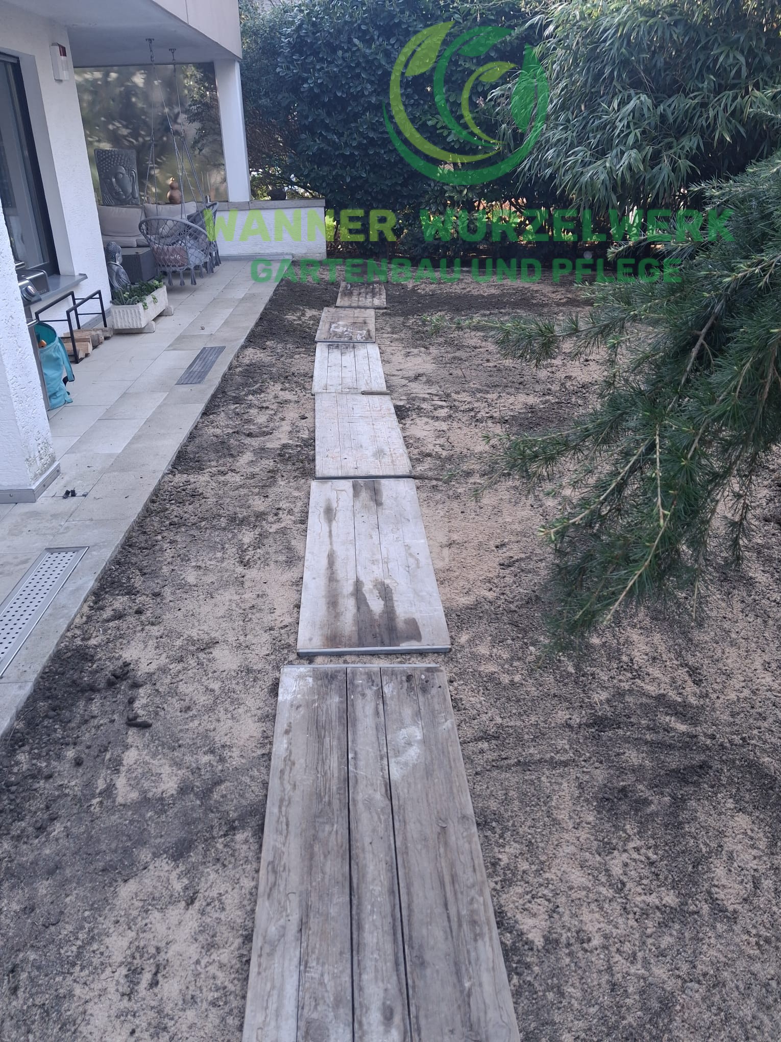 Darauf aufbauend wurde der Untergrund optimiert, um ideale Bedingungen für das Anwachsen des Rasens zu schaffen. Eine gleichmäßige und ebene Fläche ist hierbei entscheidend für ein sauberes Endergebnis.